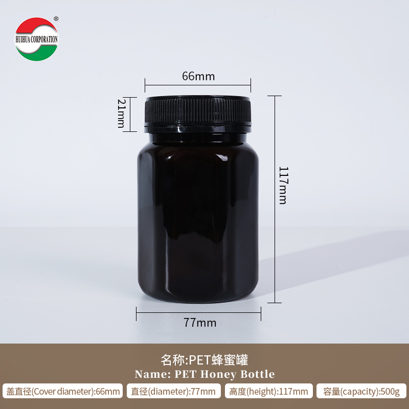 Çevre Dostu ve Gıda Sınıfı Sağlık Ürünleri Ambalajı için Vidalı Kapaklı Özelleştirilmiş Şeffaf Plastik Silindir Bal PET Şişe